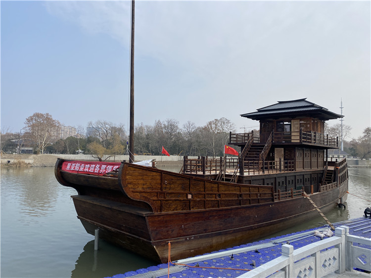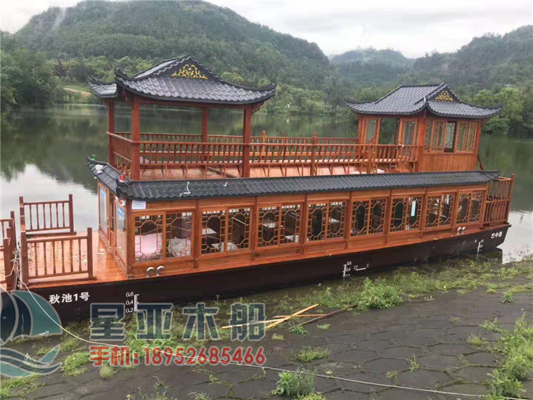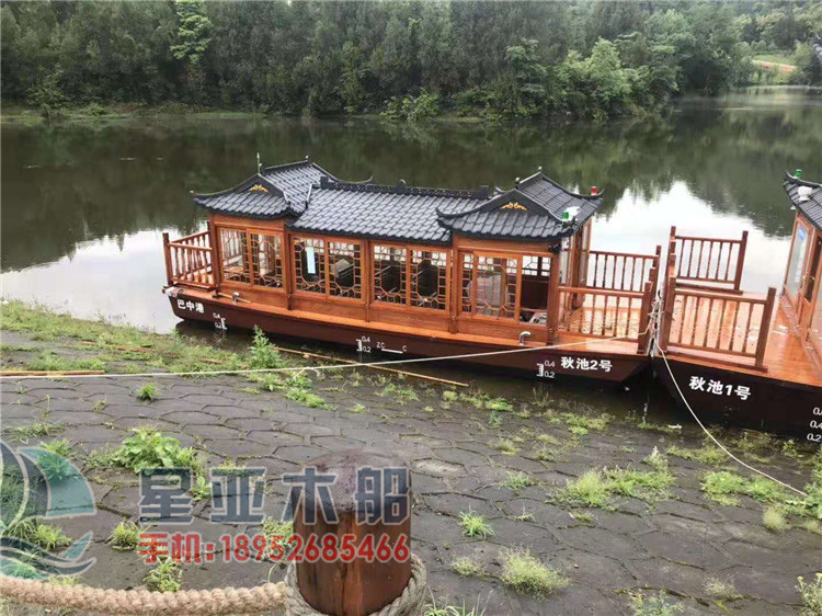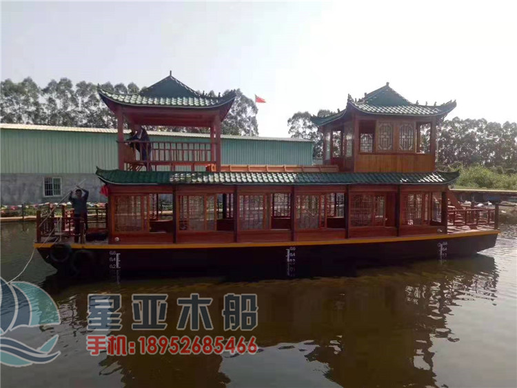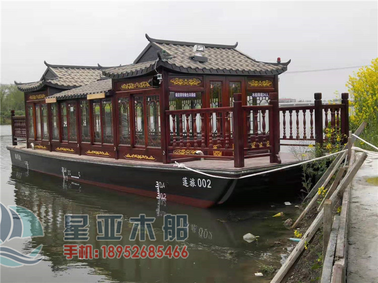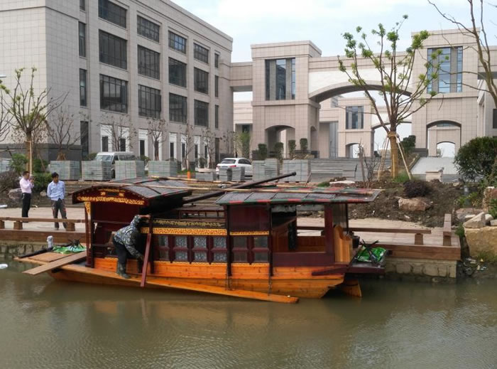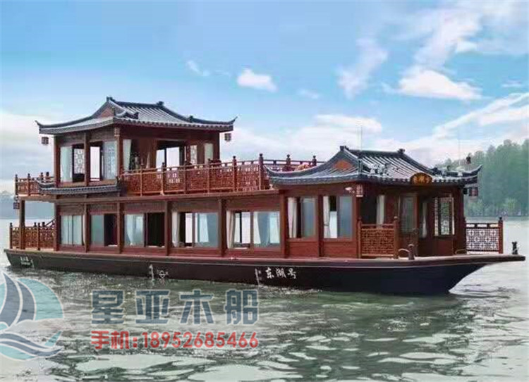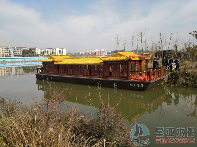 云南省14米餐飲仿古木質(zhì)船畫舫船廠…